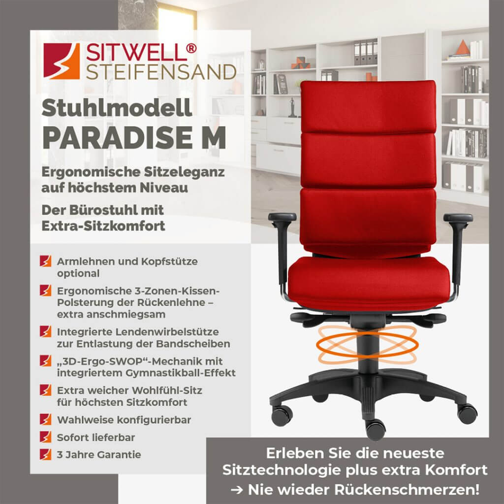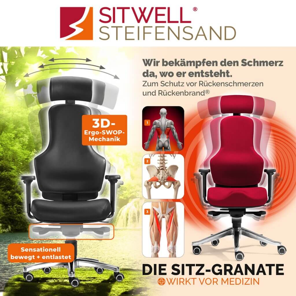 Seit mehr als drei Jahrzehnten widmet sich die SITWELL® STEIFENSAND AG der Entwicklung erstklassiger ergonomischer Sitzlösungen, die Funktionalität mit ansprechendem Design und Langlebigkeit verbinden. Ein besonderes Kennzeichen unserer Premium-Modelle ist der Einsatz hochwertiger Werkstoffe – von edlem Echtleder bis hin zu luftdurchlässigen Textilien –, wodurch wir höchste Qualität direkt aus Deutschland sicherstellen.